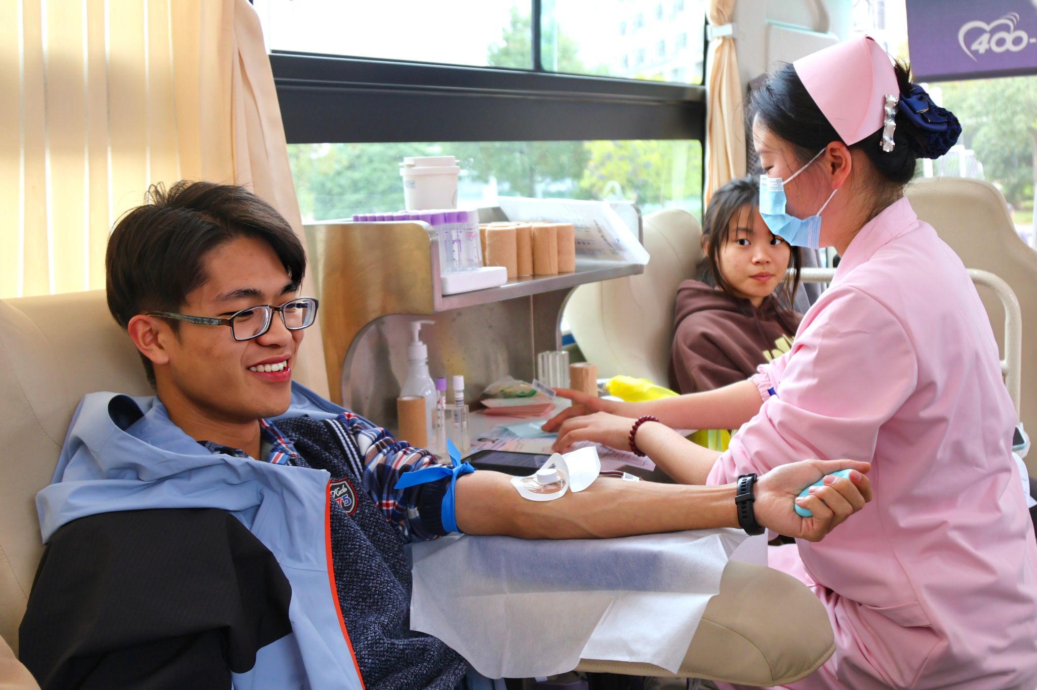 在本次无偿献血活动中,2024级临床医学陈建伟同学说出了他献血的初体验,“第一次献血,看见针头多少有点紧张,但身边的学生都在积极勇敢献血,我也勇敢迈出了第一步。当我看到自己鲜红的血液缓缓流入采血袋时,我仿佛看到了生命的接力棒在传递。那一刻,我深刻体会到了‘健康所系,性命相托’的使命誓言”。谈话间,他的脸上一直洋溢着幸福且自豪的笑容。涓滴之血汇聚生命力量,颗颗爱心点燃希望之光。