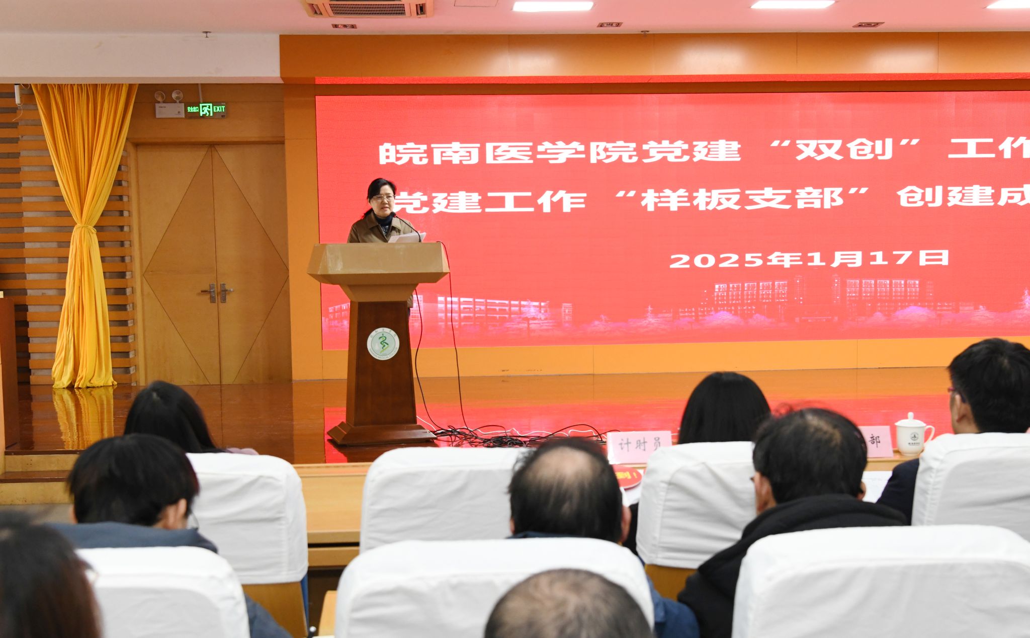 夏劲松对“样板支部”创建情况和选手表现进行了点评,对推进各级党建“双创”工作提出要求。她指出,党建“双创”是提升党建工作质量的重要抓手,是评价党建工作成效的重要依据,是以高质量党建引领和推动事业高质量发展的重要举措。“对标争先”建设计划实施以来,各级书记抓党建促发展意识不断增强,党建工作规范化、制度化、科学化水平不断提升,初步形成了可复制可推广的党建工作成果。在剖析党建“双创”工作存在的问题和问题产生的原因后,夏劲松要求,各级党组织书记要强化政治责任抓“双创”,深入学习党的创新理论,牢记“国之大者”,本着“为党育人”的初心和“为国育才”的立场做好工作;要强化质量标准抓“双创”,不断改进工作方式方法,真正把经验总结出来、把特色凝练出来,形成一批可复制、可推广的经验成果,切实发挥“双创”项目的示范引领作用;要强化引领发展抓“双创”,着眼“教好”“学好”“管好”,探索党建与事业发展融合的方法路径,在落实立德树人根本任务、加强学科专业建设、开展有组织科研、服务健康安徽战略等方面,充分发挥皖医基层党组织战斗堡垒作用和党员先锋模范作用。
