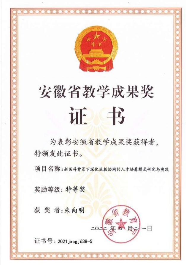 认真落实学校人才强校战略,注重师资队伍建设,多举措推动教师教育教学能力提升。现拥有省级教学团队6个,全国、全省优秀教师7人,省级教学名师5人,省级教坛新秀7人省江淮名医12人、省“青年江淮名医”3人、卫生杰出人才3人、卫生健康骨干人才19人;省“特支计划”卫生创新领军人才6人;省学术技术带头人7人,省学术技术带头人后备人选13人;省卫生厅学术技术带头人及后备人选 14人,享受国务院、省政府特殊津贴专家6人;安徽省名中医1人。获省级教学成果奖18项,其中特等奖2项,一等奖5项,二等奖5项,三等奖6项。近五年来,获批教育部产学合作协同育人项目、中华医学会医学教育分会及全国医学教育发展中心教学研究项目、省级质量工程项目等累计超150项,发表教学论文百余篇。