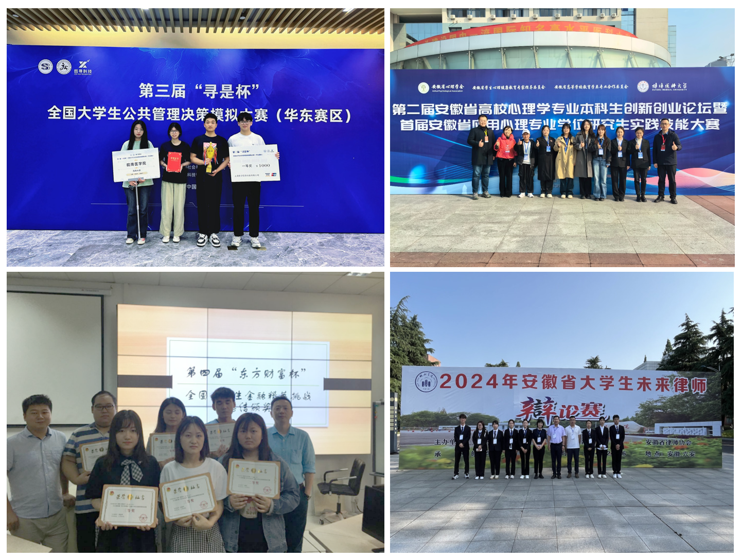 在学科领域竞赛中,获全国大学生心理与行为实验赛、公共管理决策模拟赛、金融投资大赛等国家级专业学会举办的竞赛二等奖3项、三等奖4项,省级一等奖10项,省级银奖3项、铜奖8项。
