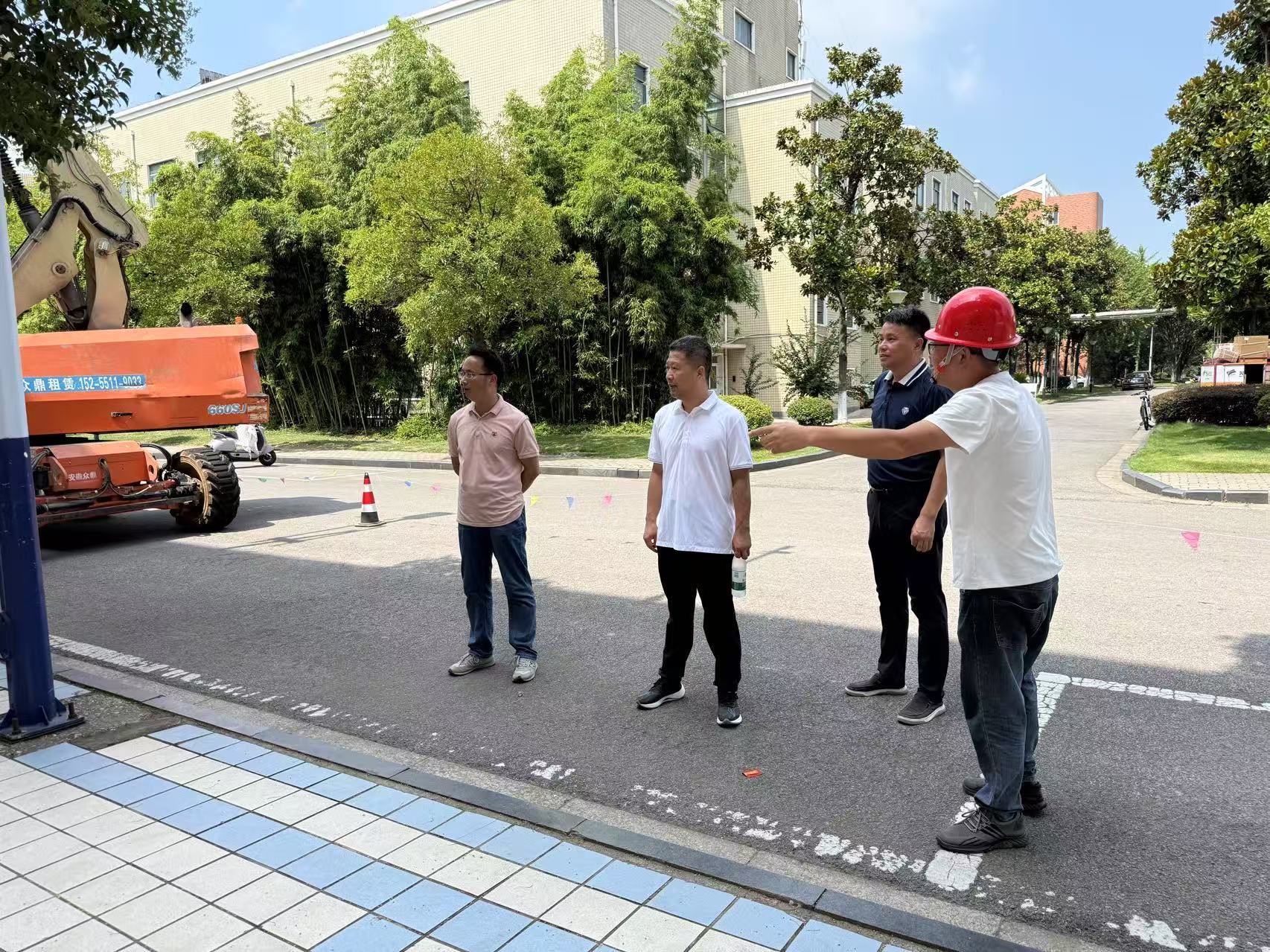 田磊先后查看了滨江校区(北区)北门及广场维修提升、5号学生公寓维修及家具安装、室外运动场钢结构维护等施工现场,听取了施工单位施工进展和安全生产情况的汇报,对相关部门在暑期战高温、抓进度、把质量、保安全等工作给予充分肯定。