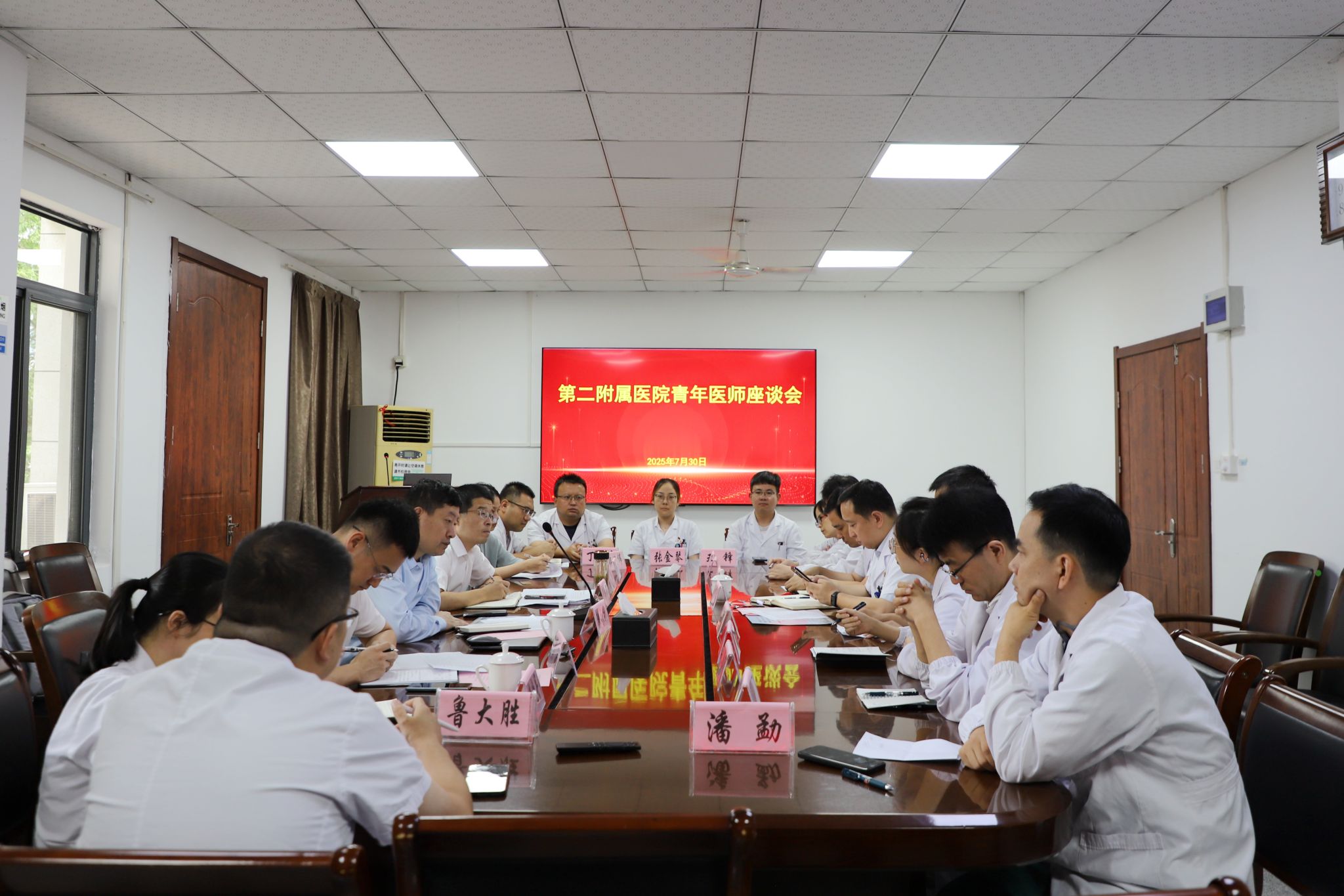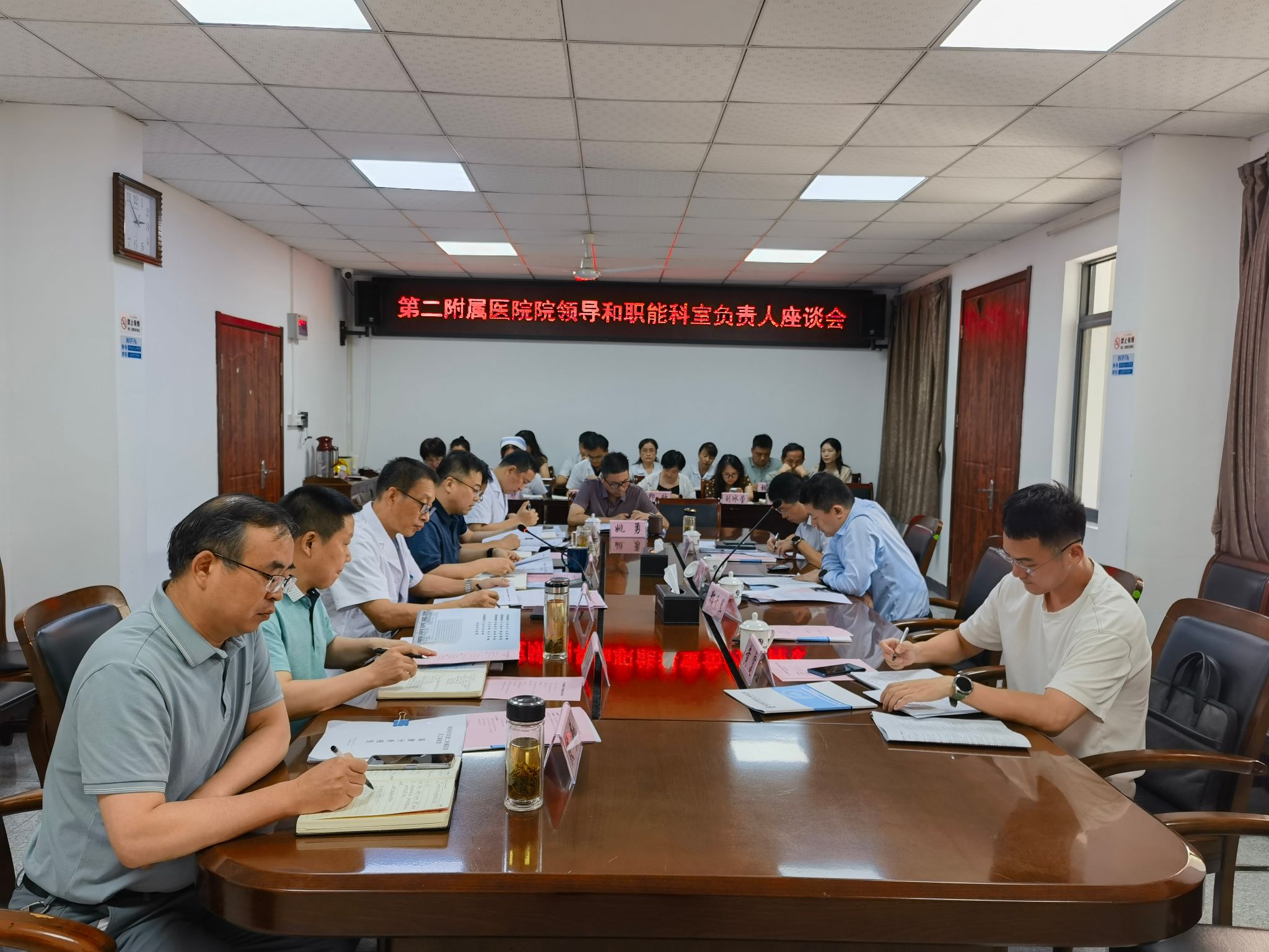 发展规划处(医院管理处),第二附属医院党政领导班子、相关职能科室负责人、临床科室主任、护士长和青年医师代表参加座谈会。(黄霆/文 第二附属医院/供图)