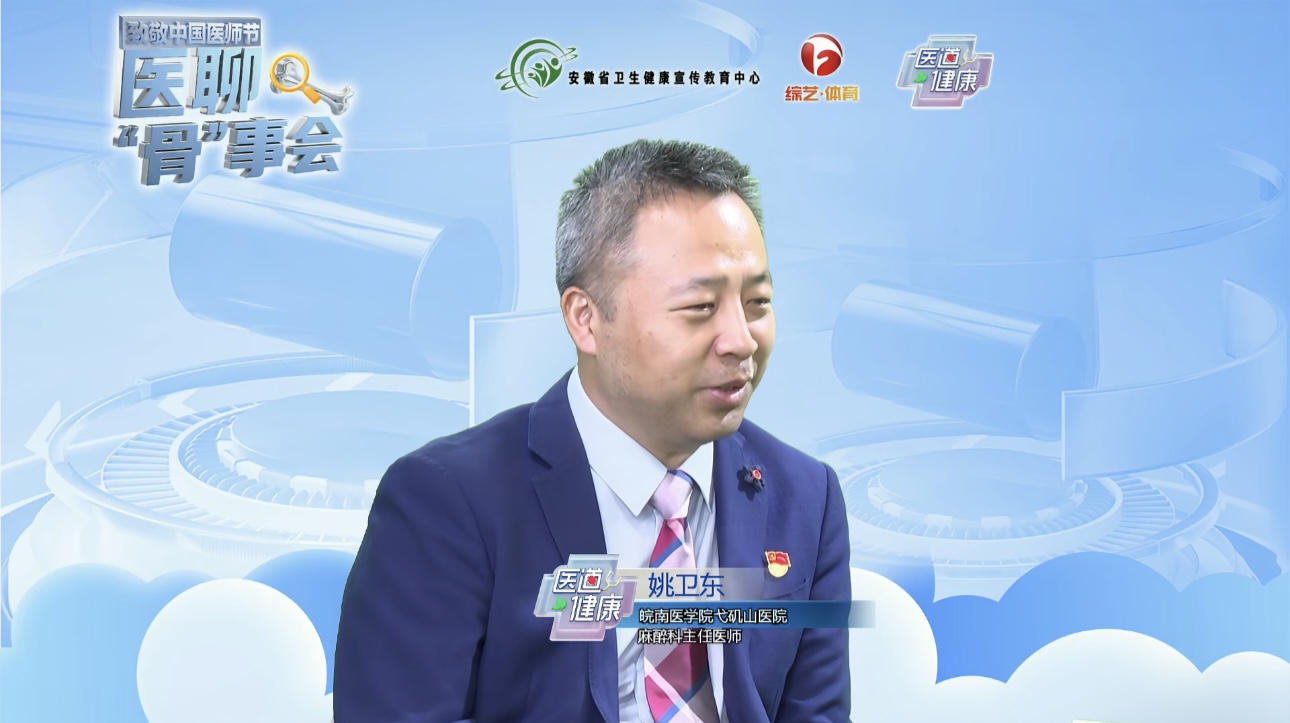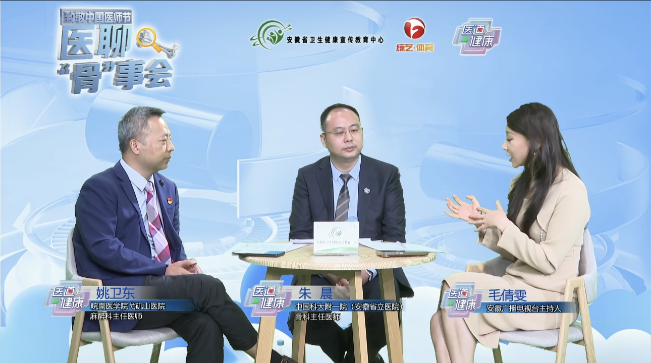 8月19日,在第八个中国医师节到来之际,安徽省卫生健康宣教中心联合安徽广播电视台综艺体育频道《医道健康》推出特别直播。我校2002届校友、中国科大附一院(安徽省立医院)骨科主任医师朱晨和我校2003届校友、弋矶山医院麻醉科主任医师姚卫东两位骨干医师,在直播中分享了各自的从医心路,解答了大众关心的健康问题,以实际行动诠释“德馨于行,技精于勤”的节日内涵,展现了我校校友在医疗岗位上的责任与担当。