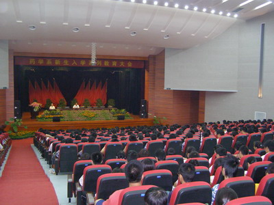9月9号上午,药学系召开以专业思想教育、学风教育、安全健康教育、党籍管理和校纪校规教育为主要内容的新生入学教育大会,出席大会的有系主任吴少云,系党总支书记钱向红、系副主任刘晓平,保卫处周黎明老师,教务处洪亮老师,校医院储召阳老师,08级辅导员以及全体08级新生。大会由刘晓平副主任主持。