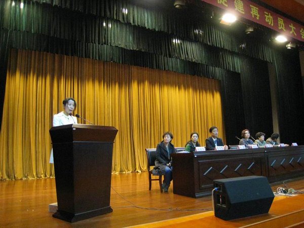 首先,护理学系党总支刘群书记做了《以评促建,为学校迎评做贡献》的报告。报告阐述了本科教学工作水平评估的重大意义,阐明了“以评促建,以评促改,以评促管,评建结合,重在建设”的二十字方针,要求全系师生牢固树立“校兴我荣,校衰我耻”的意识,统一思想,提高认识,艰苦奋斗,齐心协力,以实际行动为达到“评建创优”的目标做出贡献。