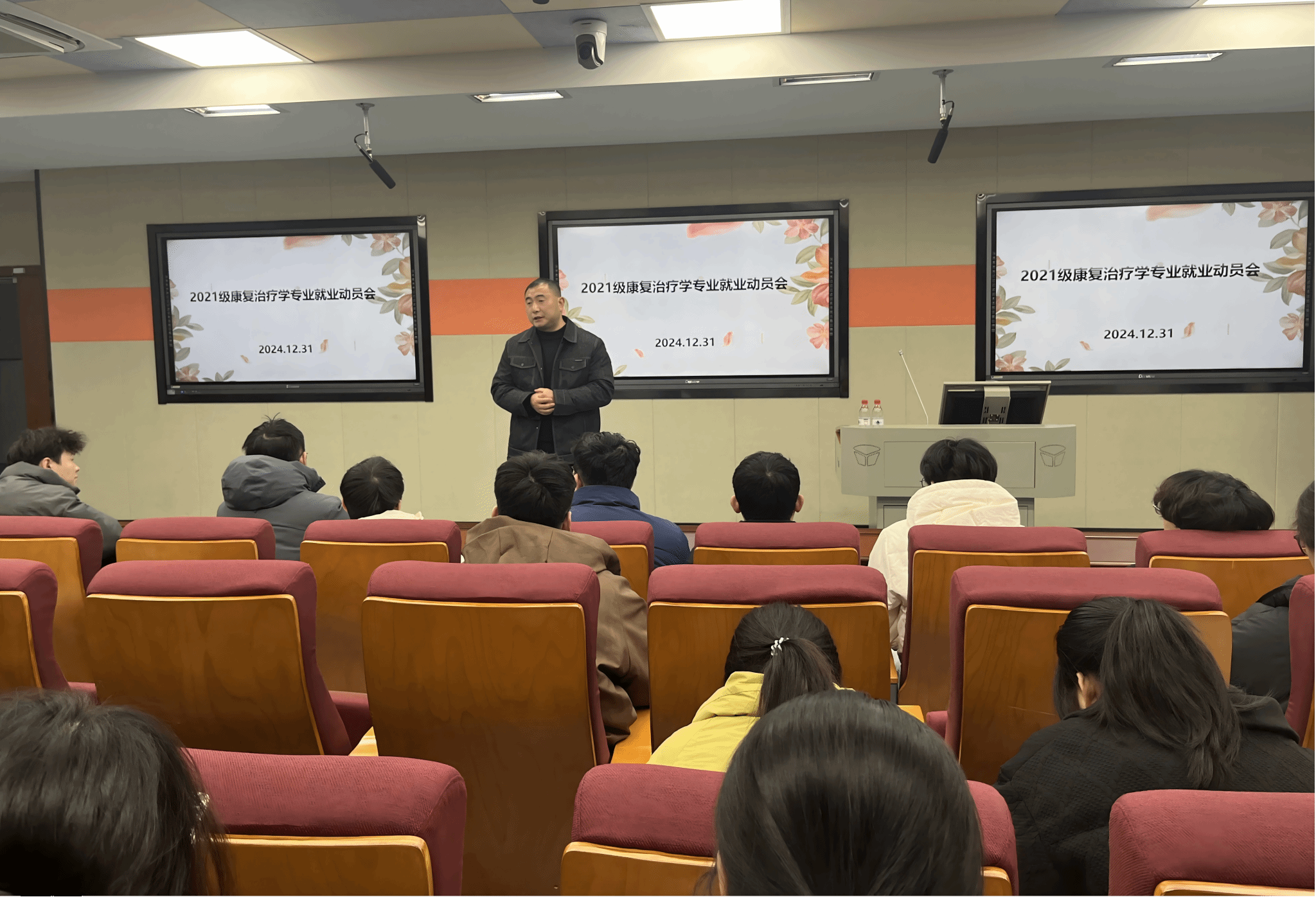 为响应党和国家号召,积极宣传征兵入伍政策,鼓励大学毕业生参军入伍报效祖国,2024年12月31日晚,临床医学院举办2025年征兵动员宣讲会,邀请学生工作部武宇洋老师和退役复学学生刘俊主讲,2020级临床医学、2021级康复治疗学专业70余名同学参加会议。