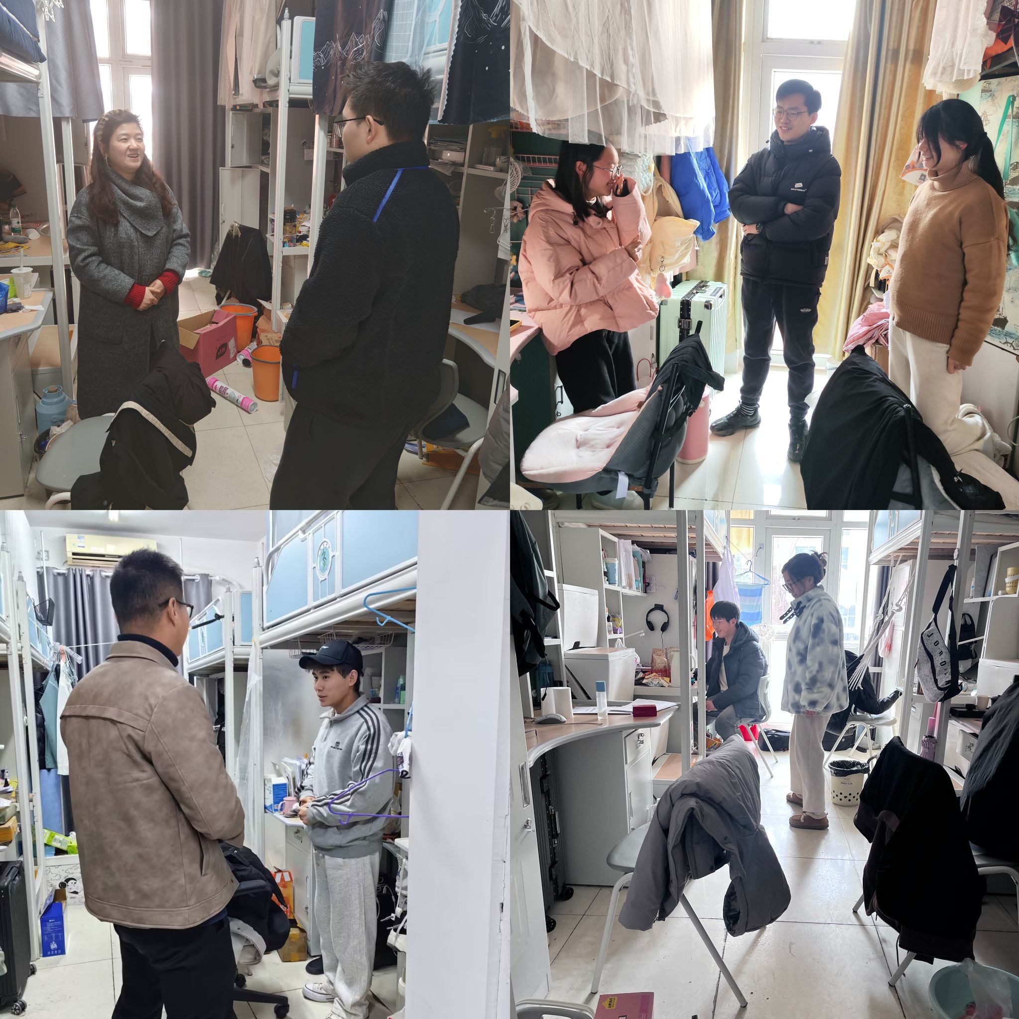 深入一线,关爱学生。2月15日—16日,学院领导、辅导员深入学生宿舍,看望慰问返校学生,详细了解学生假期生活、学习情况和思想动态,叮嘱学生做好新学期规划,以饱满的精神状态投入到新学期的学习生活中。