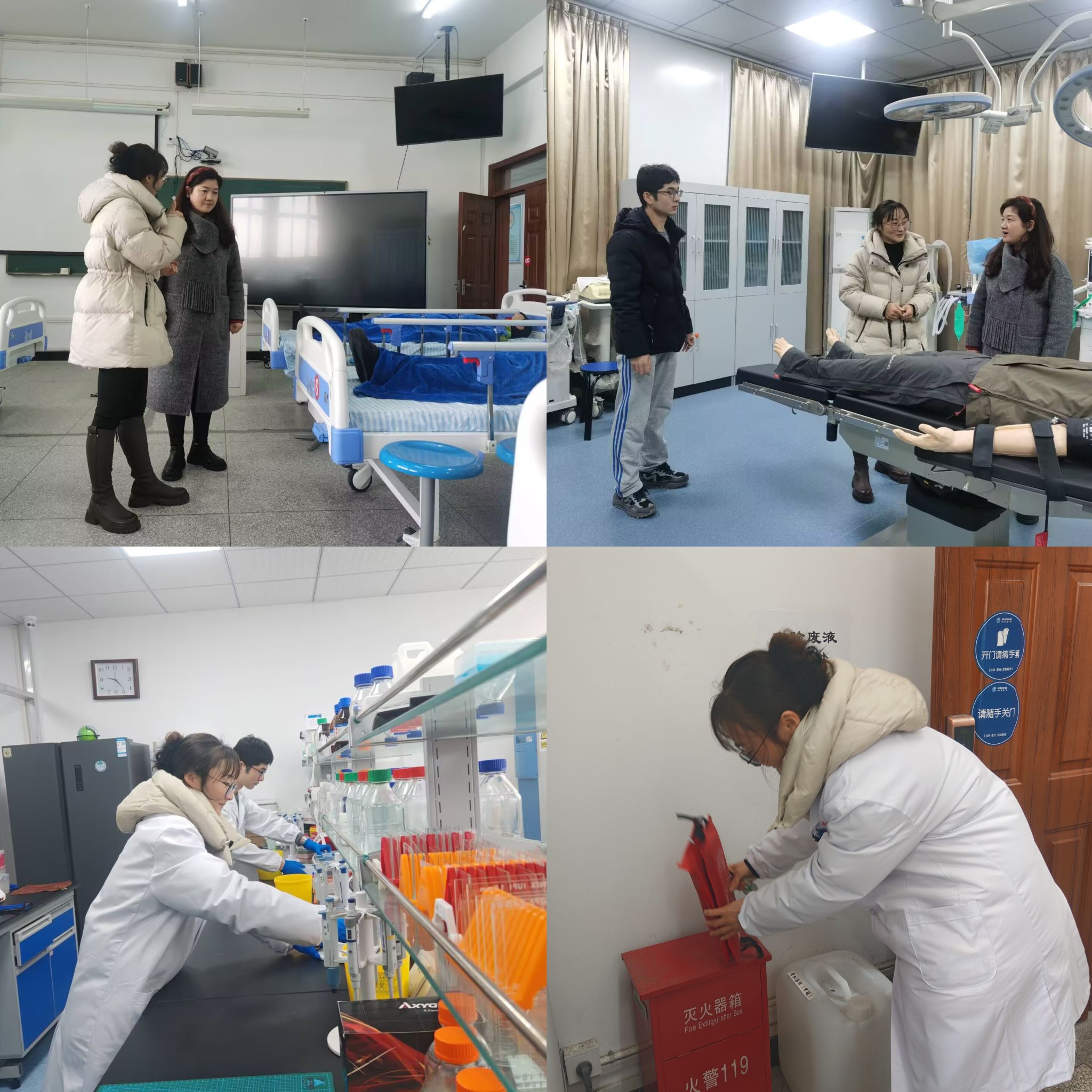 筑牢防线,消除隐患。为确保新学期实验教学工作顺利开展,麻醉实验实训中心提前准备,调试实验仪器设备,做好实验课各项准备工作。2月17日,学院对实验室进行了安全检查,重点检查了实验室危化品管理、仪器设备运行、消防安全等方面,进一步排除安全隐患,确保实验室安全运行。