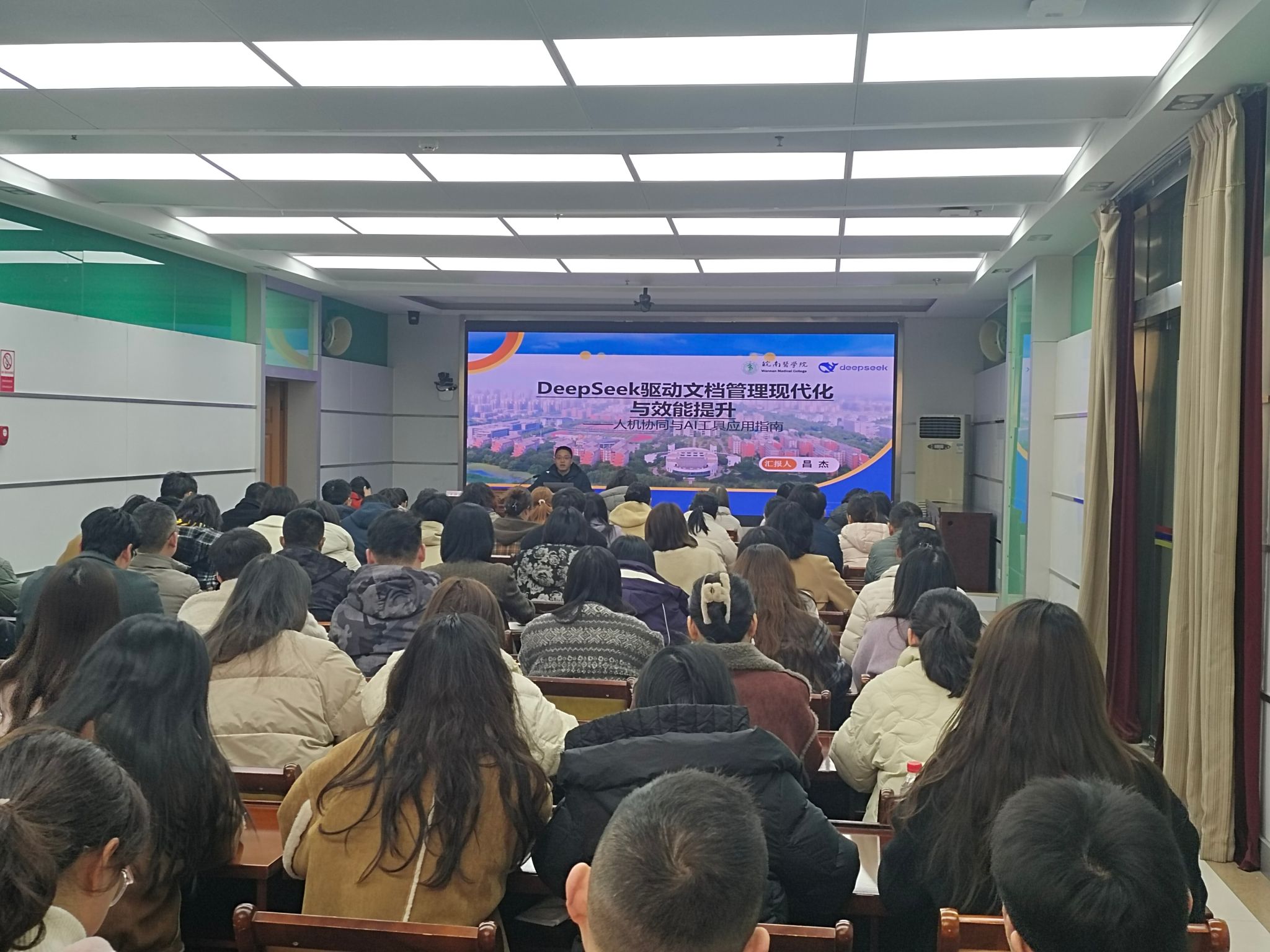 为进一步提升我校青年干部队伍素质,提升日常办公效能,3月7日下午,组织部、机关党委联合举办第三期青年干部培训讲座,邀请医学信息学院副院长昌杰作题为“DeepSeek驱动文档管理现代化与效能提升”的专题辅导讲座。全校110多名科级及以下管理干部参加,讲座由组织部副部长、机关党委书记任苔蓉主持。