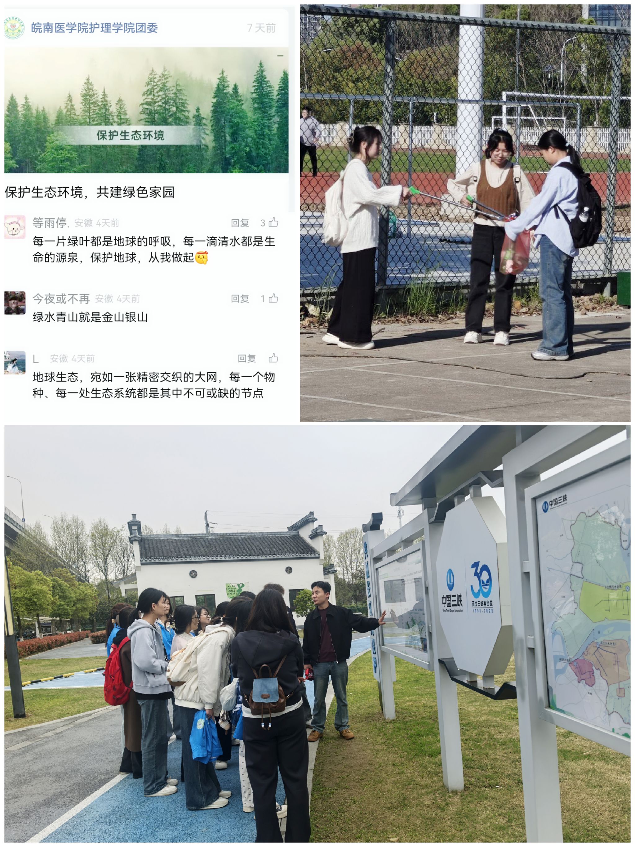 积极响应生态文明建设号召,以“青春护绿意、行动践文明”为主题,组织学生开展校园清洁、生态研学及环保宣传等系列实践活动。志愿者在校园内清理环境垃圾、宣讲环保知识,并通过参观生态技术示范区、发布线上科普推文等形式,普及绿色循环理念,累计覆盖师生及群众1200余人次,积极营造了“人人参与,共建绿色家园”的氛围。