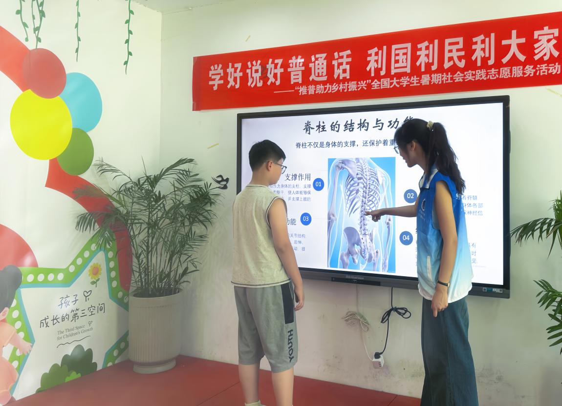 7月中旬至8月底,医学影像学院“医语同声”志愿服务队分赴新疆、安徽、云南与河北等四省,成功开展“推广普通话,科普护健康,文化润万家”为主题的暑期社会实践活动。团队立足医学专业背景,创新性地将健康知识普及与国家通用语言推广深度融合,探索基层公共服务优质化的新路径,为乡村振兴与健康中国战略的实施注入蓬勃青春力量。