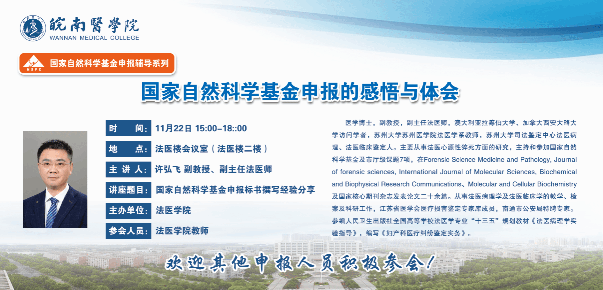 法医大讲堂:国家自然科学基金申报的感悟与体会